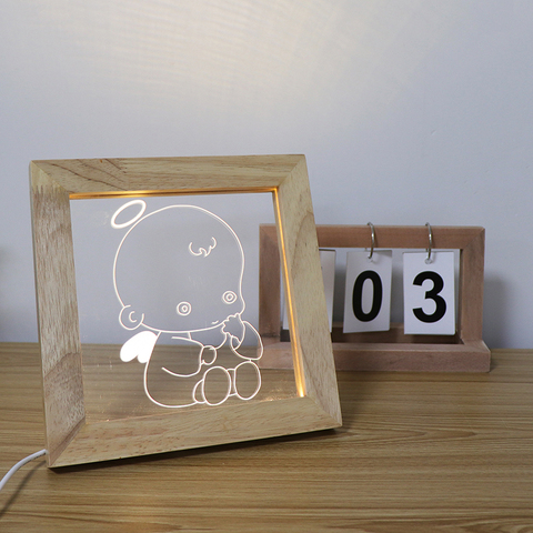 Индивидуальный подарок, 3D фоторамка, ночник, 5 В, USB, деревянная светодиодная рамка, акриловая лампа настроения для детской комнаты