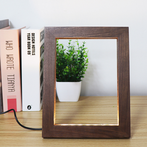Горячая Распродажа! Светодиодная настольная лампа ночного освещения с рамкой из орехового дерева